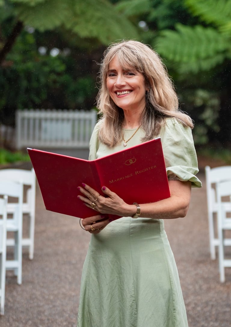 I’ll arrive early to set up, calm nerves, and make sure everything runs smoothly. Then watch it all come together — delivering a heartfelt, personalised ceremony that celebrates your love and your story.